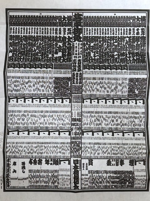 さてさて、これは似て非なるではない別の話になりますが、同じように文字がギッシリのデザインに大相撲の番付表(※写真⑦)があります。