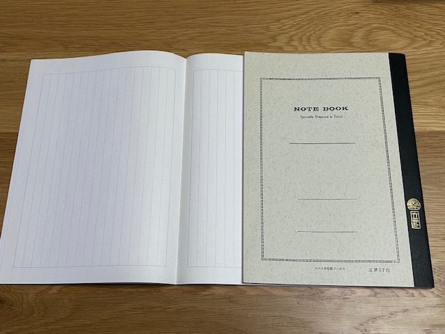それはノートのほぼ全てが左開きで右開きのものがないことです(写真③)。唯一縦罫のノートだけは右開きです(※写真④)。