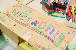 東京マラソンを通じて発生した廃棄物を素材に「応援マラカス」「応援ボード」などを制作します。