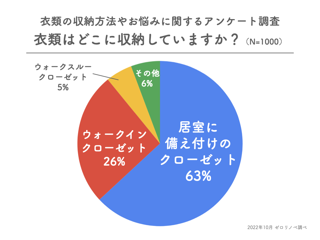 ■一番使用されている収納方法は、「居室に備え付けのクローゼット」が63%。