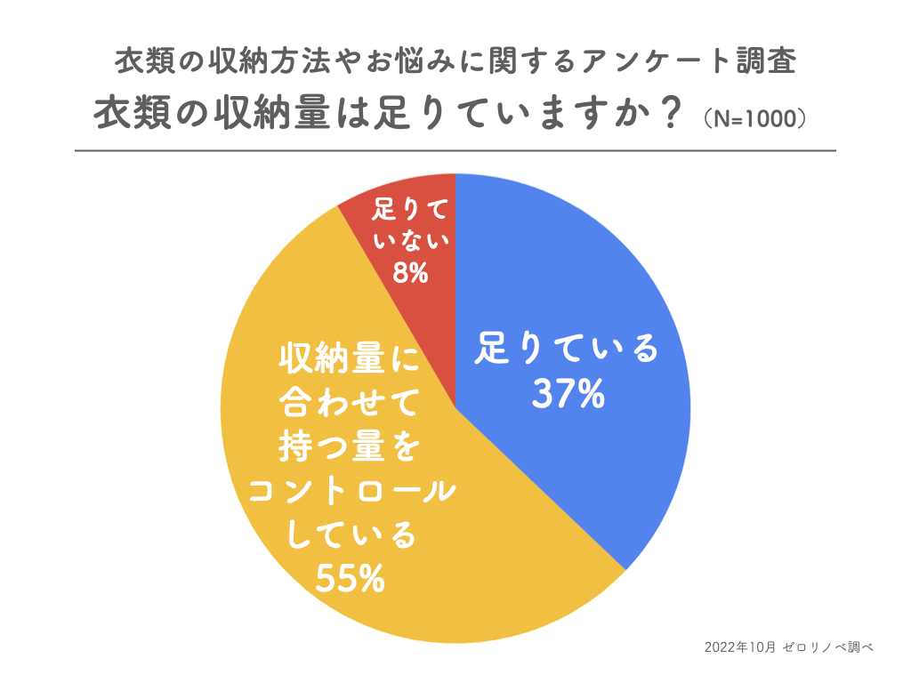【55%が収納量に合わせて持ち物をコントロール】東京都在住30〜40代既婚男女に、衣類の収納方法やお悩みに関するアンケート調査を実施。