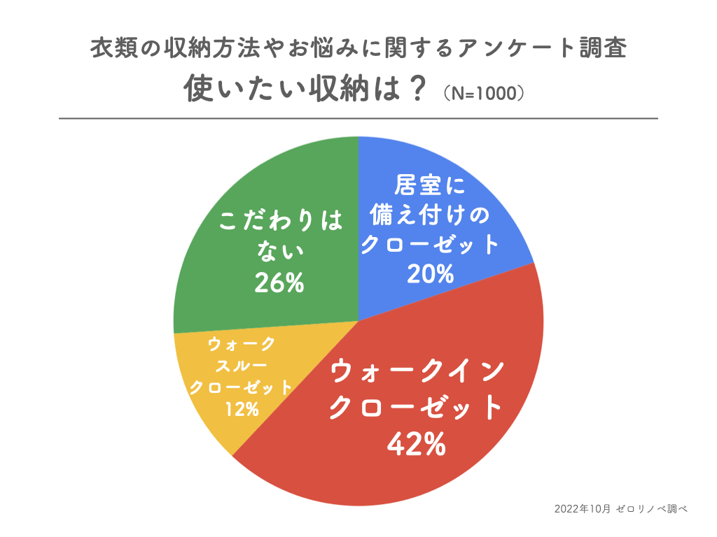 ■使ってみたい収納方法は、ウォークインクローゼットが42%。