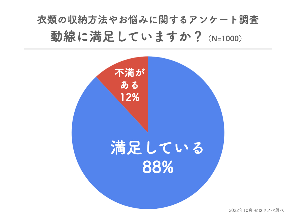 ■洗濯から収納までの動線の満足度は88%が「満足している」。