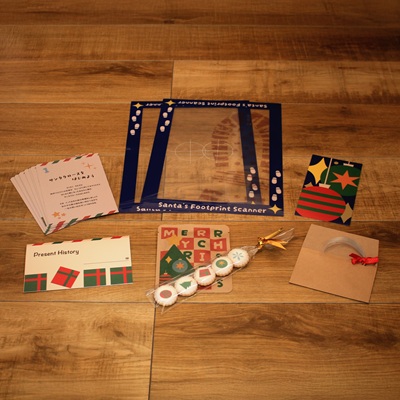 今回のキットには、サンタの白髭や足跡といった“物語の証拠”を演出する小道具をはじめ、クリスマスのリアリティとワクワク感を高めるためのアイデアを詰め込んでいます。