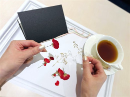 ・アートキット (メッセージカード、バラのドライフラワー、リボン、装飾素材、作り方説明紙、敷き物)