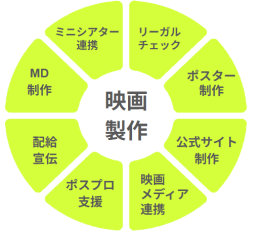 資金調達に留まらず、映画製作はもちろん、エンターテインメントのクリエ-ションのあらゆるフェーズをトータル的にサポートします。