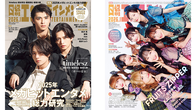 株式会社日経BP(本社:東京都港区、社長CEO:井口 哲也)は2025年12月4日、エンタテインメント総合メディア『日経エンタテインメント!』2026年1月号で、「2025年エンタメベスト10」などを発表しました。メイン記事は「2025年メガヒットエンタメ総力研究」で、「7大ジャンル年間ヒットランキング」「注目4ジャンルデータ分析2025」も含め総力49ページの大特集で、25年のエンタテインメントを振り返ります。