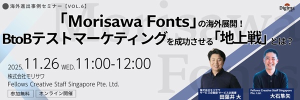 フェローズシンガポールのManaging Director大石 隼矢が、2025年11月26日(水)開催のオンラインセミナー『「Morisawa Fonts」の海外展開!BtoBテストマーケティングを成功させる「地上戦」とは?』に登壇します。