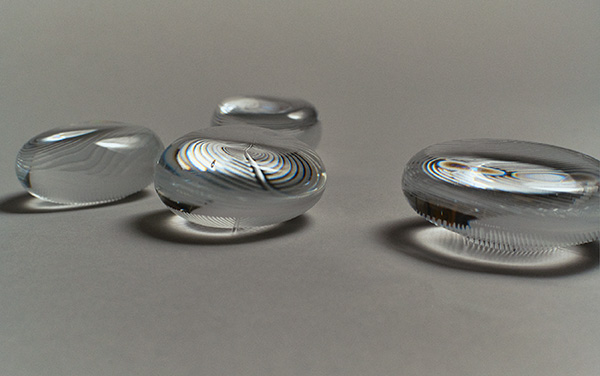 竹工芸作家・安部仁美による作品は伝統的な竹工芸の技法に、彼女ならではのモダンな感性が溶け合い、実用性を備えたアートピースとして昇華されています。新田佳子のガラスは、自然界の光や影を閉じ込めたような繊細な表情を持ち、透明性の中に詩的な世界観を宿します。