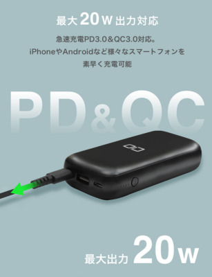 USB-C(出力PD):5V=2.4A / 9V=2.22A / 12V=1.67A / 3.3-11V=2A