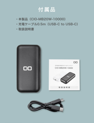 『CIO-MB20W-10000』は実用性の高い大容量10,000mAhを搭載し、20Wの急速充電に対応したモバイルバッテリーです。スリムサイズで手になじむ本体は持ち運びにも便利で、急速充電にて場所を問わず素早い充電が可能です。「CIO-MB20W-10000」はAmazon.co.jpなど主要ECサイトでお買い求めいただけます。