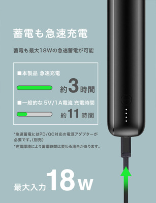 ※急速蓄電にはPD/QC対応の電源アダプターが必要です(別売)