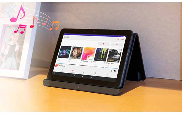 同時に、タブレットでは「回転表示」にも対応し、iPad/Androidタブレット/Fireタブレットを横置きスタンドにセットしてCDラジオや、専用プレイヤーのように楽曲を楽しめます。