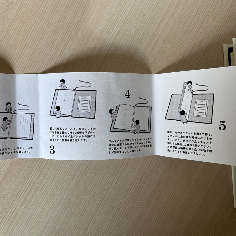 このリフィルを「ブックジャケット」と呼ばれるバインダーの中に自由な順番で組み込んでいくことで