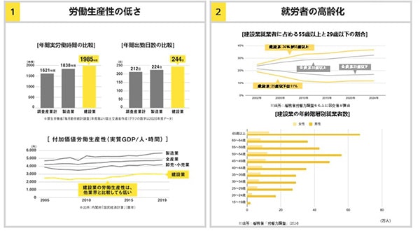 建築業は、労働環境が過酷で生産性が低く若手が参入しにくい。