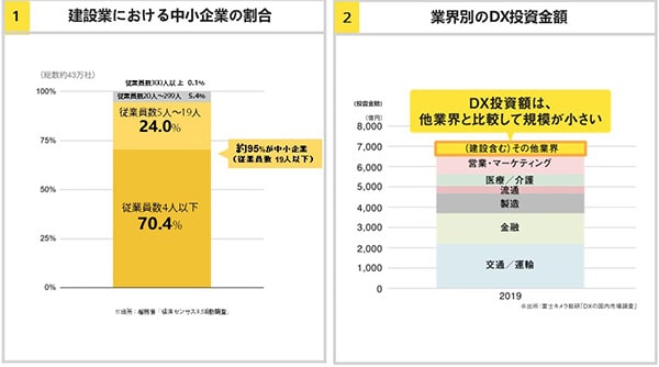 建設業の約95%は、中小企業。建設業界全体のDXのためには、中小建設事業者のDXが不可欠。