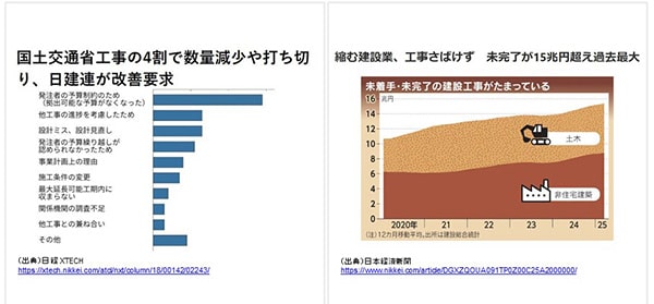 人手不足に加え、人件費・材料費の高騰による工事費増加により工事量の減少・打ち切りも顕在化。