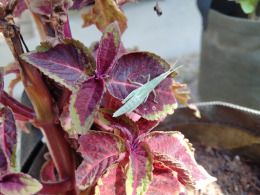 彼らにも好き嫌いがあるらしく、いちばんやられてしまったのがヒマワリだ。いまだに花を咲かせるでもなく、穴の開いた葉が数枚ついているだけで背丈も伸びない。以前より大きくなったバッタを見かけることも増え、まるで彼らを育てるためにヒマワリやコリウスを植えたみたいな気がする。