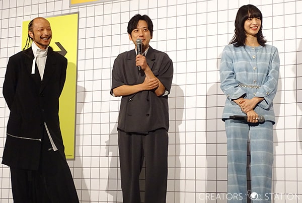 “迷う男”役を演じた二宮さんは、「数あるいろんな映画の中から、ヘンテコな映画を選んで…。入口と出口が全く違う映画はなかなかないと思うので、みんなで作品を共有できてうれしい」と述べた。