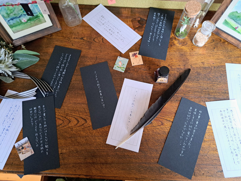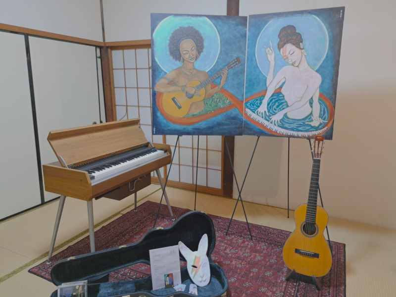 縁側ではアマヤギ堂 ジュン・ユキさんがしろやぎさんとくろやぎさんの無限のやり取りを表現した「やぎさんゆうびん」が展示されています。