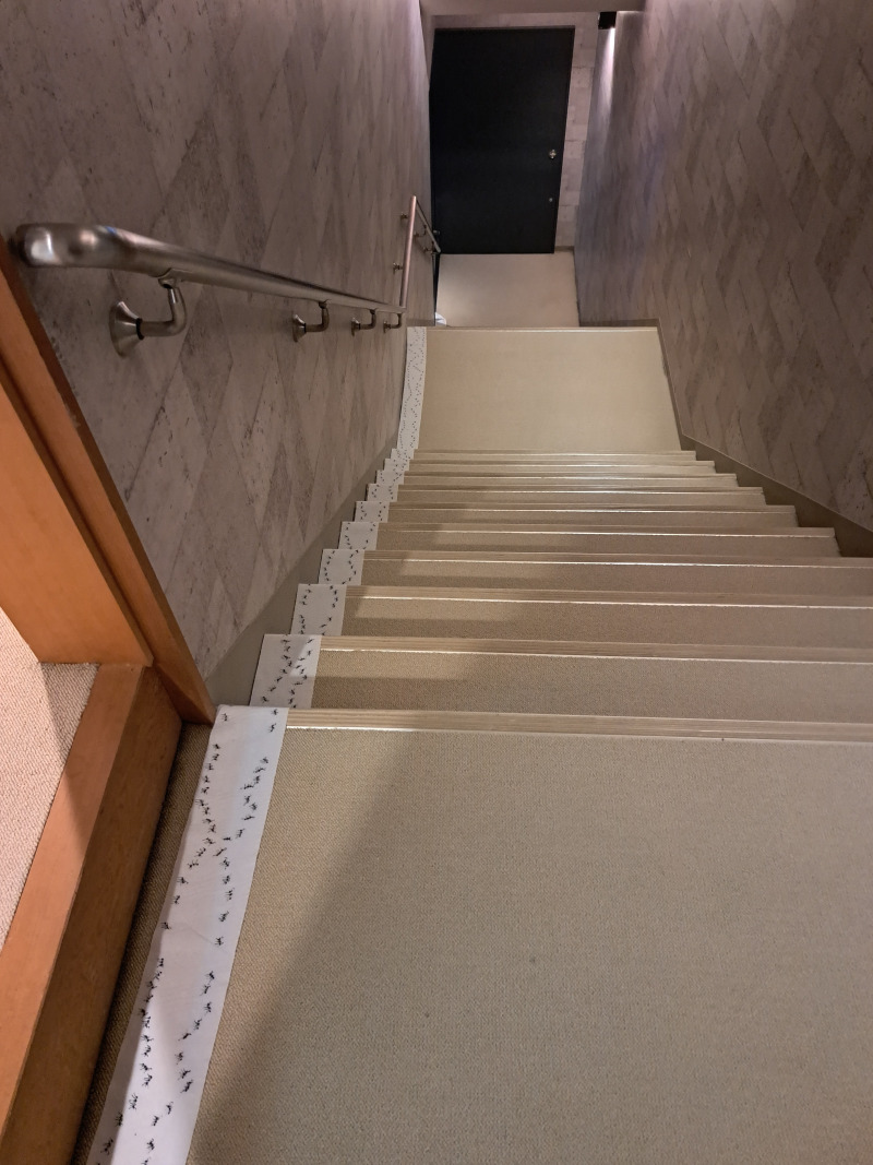 また、階段には北口辰也さんの「アリの大行列」が地下の納骨堂まで続いています。