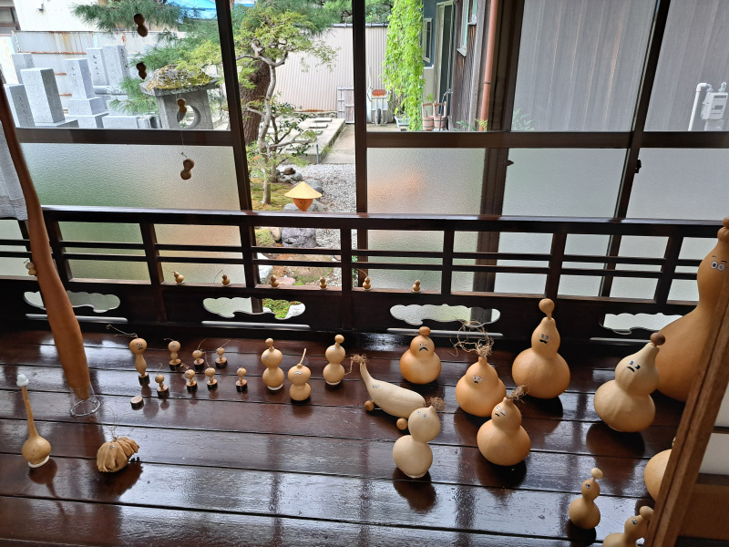 お庭と縁側では中西晶子さんが製作した「ひょうたん星人御一行様」にほっこり。