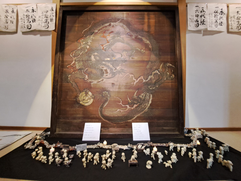 浄光寺では檀家さんから引き取った龍の天井画とコラボした土用下龍巳さんの「Doragon & Ouroboros(あるいは輪廻の一つについて)」が目に付きました。