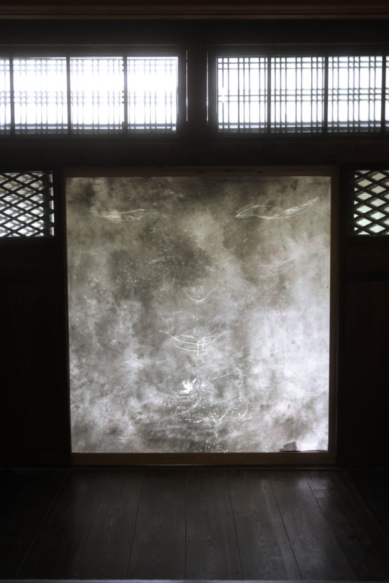廣誓寺では毎年テーマに沿った大作を出品している画家の倉林雅幸さんが、扉一面を使った「月の眼差し」を展示していました。