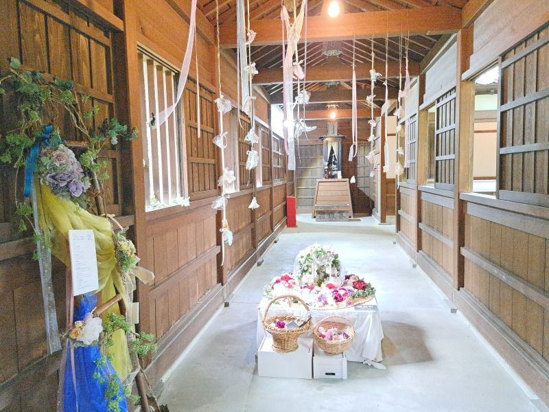 1481年創建の聞善寺。お寺と落語を組み合わせた「おてらくご」というイベントにも参加しています。お寺の1階だけでなく2階やお庭も広く使った展示が特徴です。