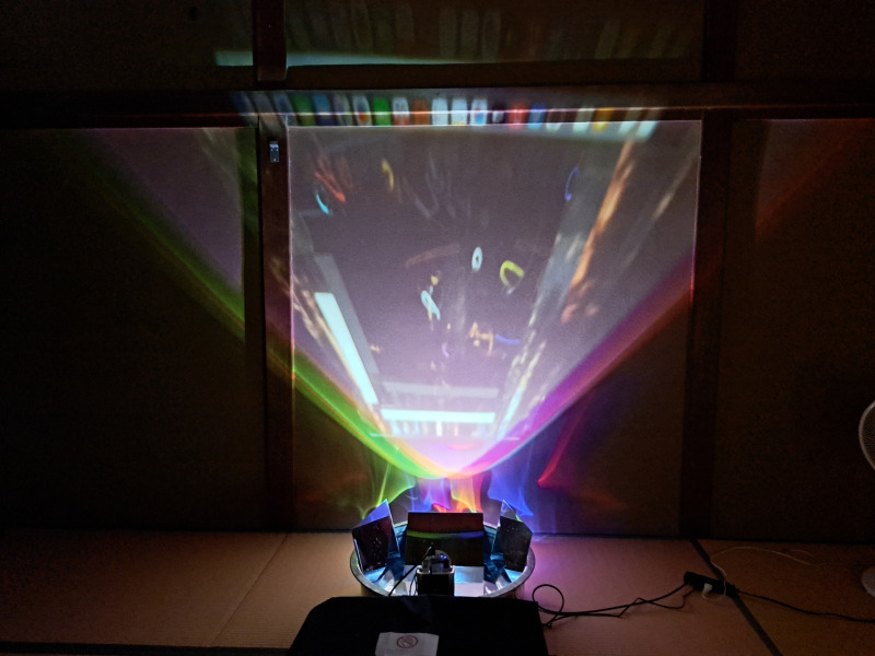 2階ではアムさんが体験型の不思議な作品をプロジェクターや金ダライを使って展示していました。