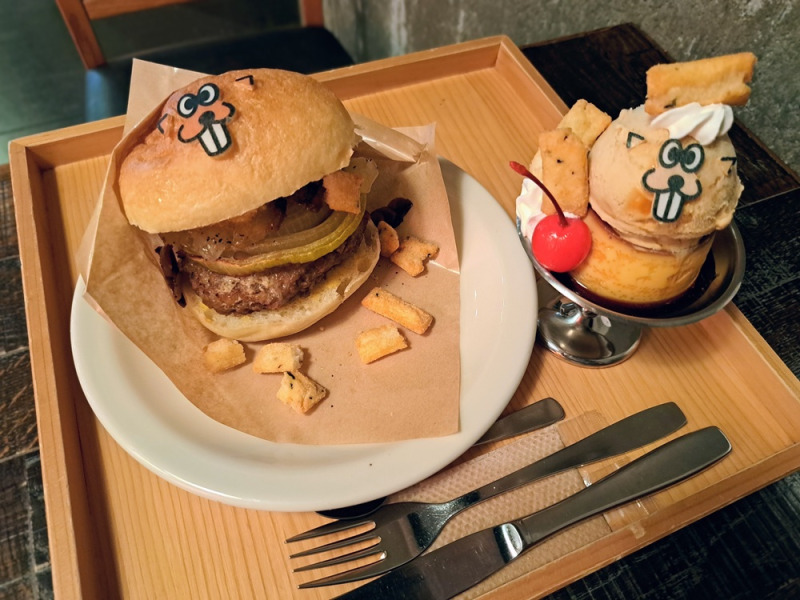 私は関西・大阪万博で限定販売された「メープルビーバー」をグルメバーガーにトッピングした「ビーバターバーガー」と、「HUM&Go#」の人気メニュー「自家製プリン」とプレーンビーバーをあわせた「ビーバーと自家製プリンの運命の出会い」をいただきました。