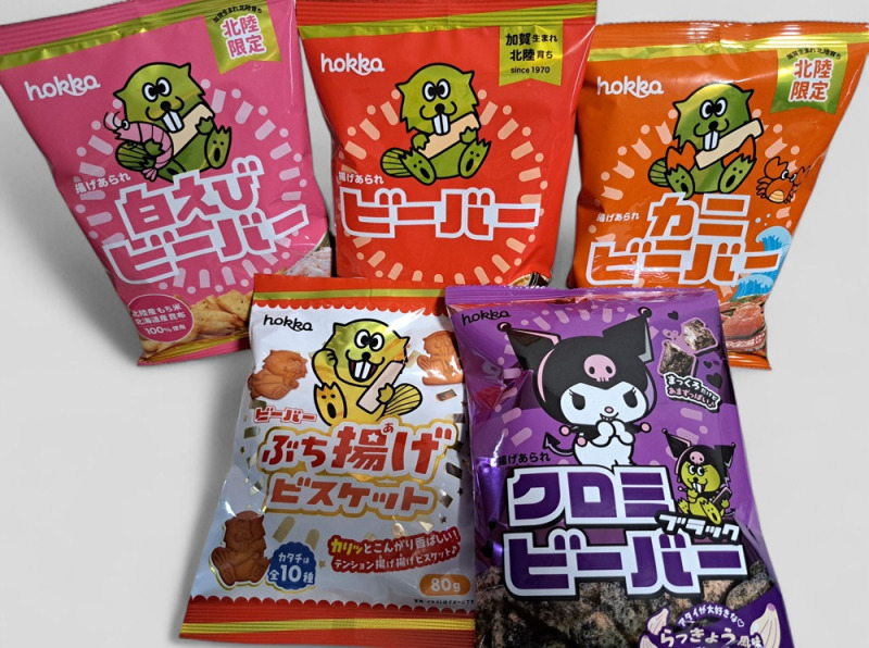 ビーバーは北陸産のもち米に日高昆布を練り込んだ「プレーン」をベースに、八村選手の地元・富山県産の白エビを使った「白えびビーバー」や北陸産ズワイガニエキスを使用した「カニビーバー」、「カレービーバー」や「あおさ塩ビーバー」など多彩なフレーバーが展開されています。