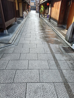 北上すると花街の街並みになっていく。打ち水が美しい。