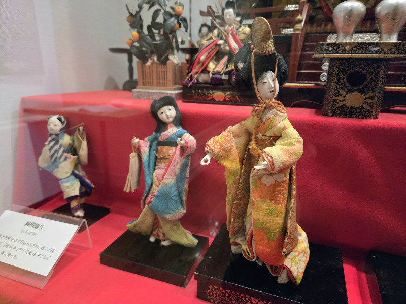 中には花魁道中の人形や、映画「国宝」でも話題になった歌舞伎の演目「娘道明寺」の人形も一緒に展示されている。