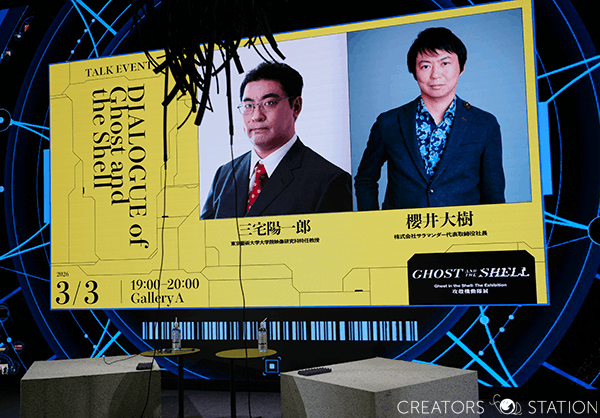 2026年1月30日よりTOKYO NODE GALLERYで開催されている「攻殻機動隊展 Ghost and the Shell -Ghost in the Shell: The Exhibition」。「攻殻機動隊」全アニメシリーズを横断する史上初の大規模展であるが、その中のトークセッションシリーズの1つである”DIALOGUE of Ghost and the Shell 「三宅陽一郎 × 櫻井大樹」”に今回参加してきた。