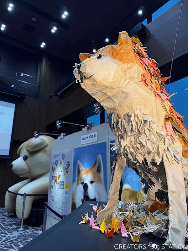会場で最も目を引くのは巨大な秋田犬のバルーン。天井まで届くほどの大きな秋田犬は、会場のランドマークとして来場者の絶好のフォトスポットとなっていた。
